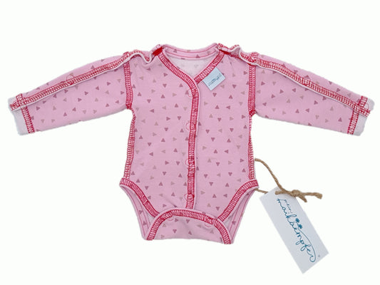 Frühchenbody/ Sondenbody "Smarty", für Frühchen- und Babys, Kabel, Schläuche, mit Bauchöffnung und Klettverschluss, rosa Dreiecke, verschiedene Größen